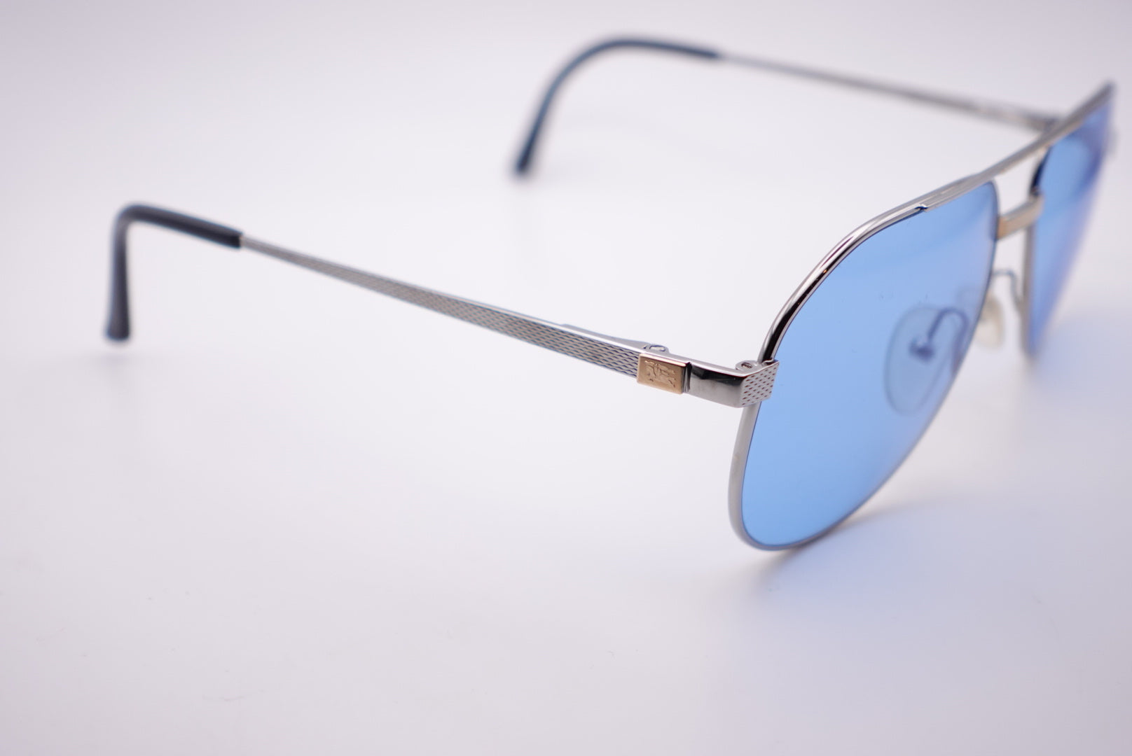 Original 1980’s BURBERRY B8823 vintage sunglasses this frame features a silver metal finish with subtle gold accents finished with blue Lenses