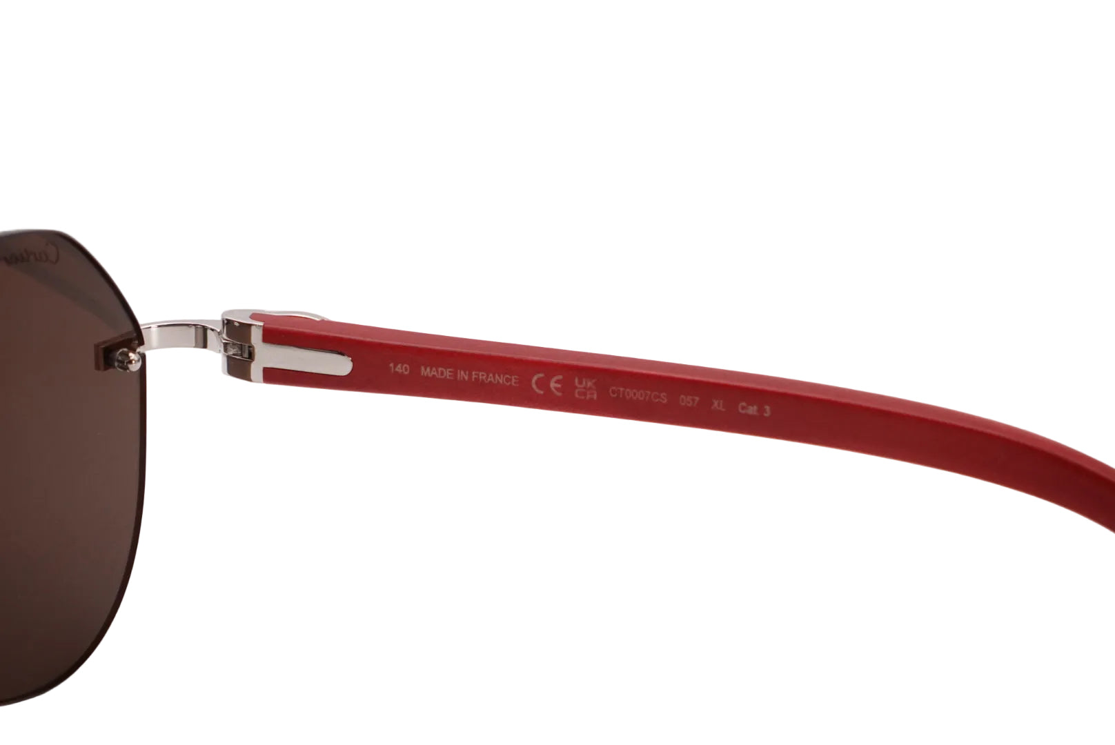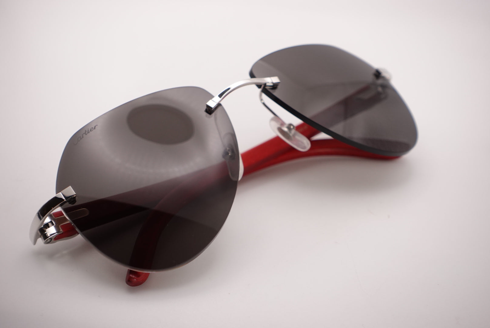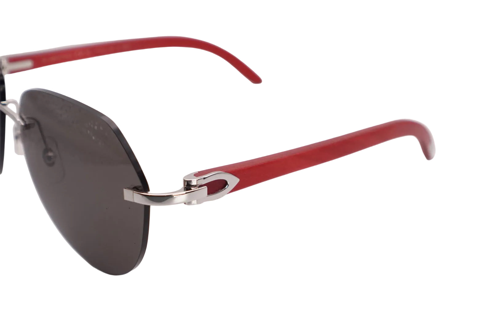 Original Cartier C Décor CT0007Cs Red Woods Rimless Avaitor Sunglasses With Solid Dark Grey Lenses Finish Of In Silver Hardware
