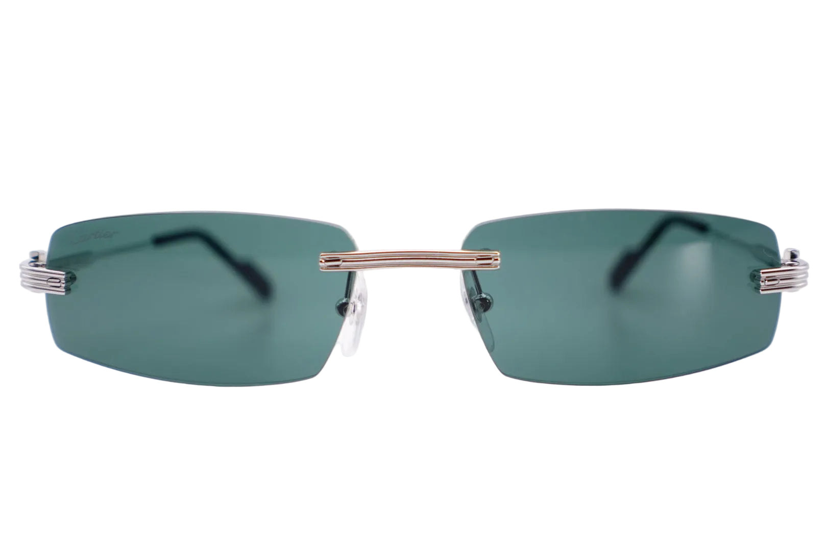 Original Cartier Premiere de Cartier Sunglasses CT0536S 002 Refined silver-tone metal frame paired with dark green-gray lenses, creating a strong, understated luxury profile.