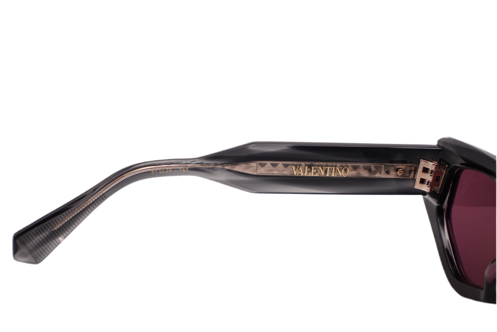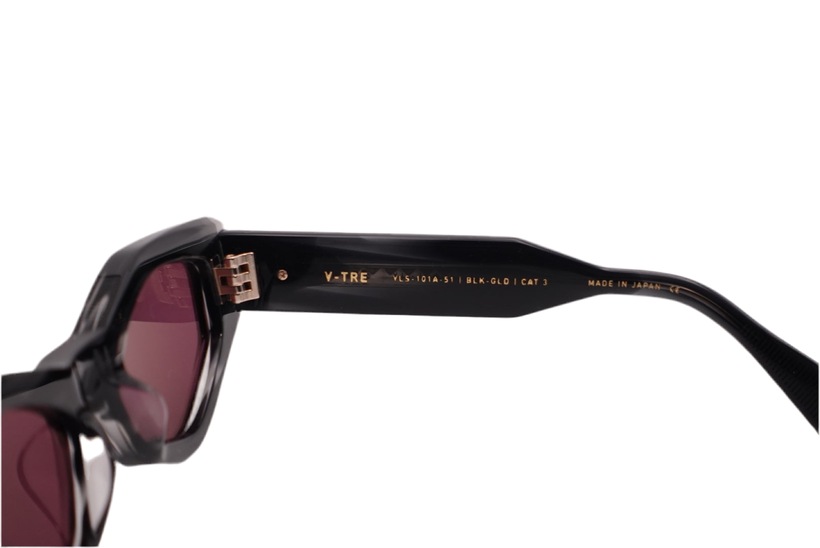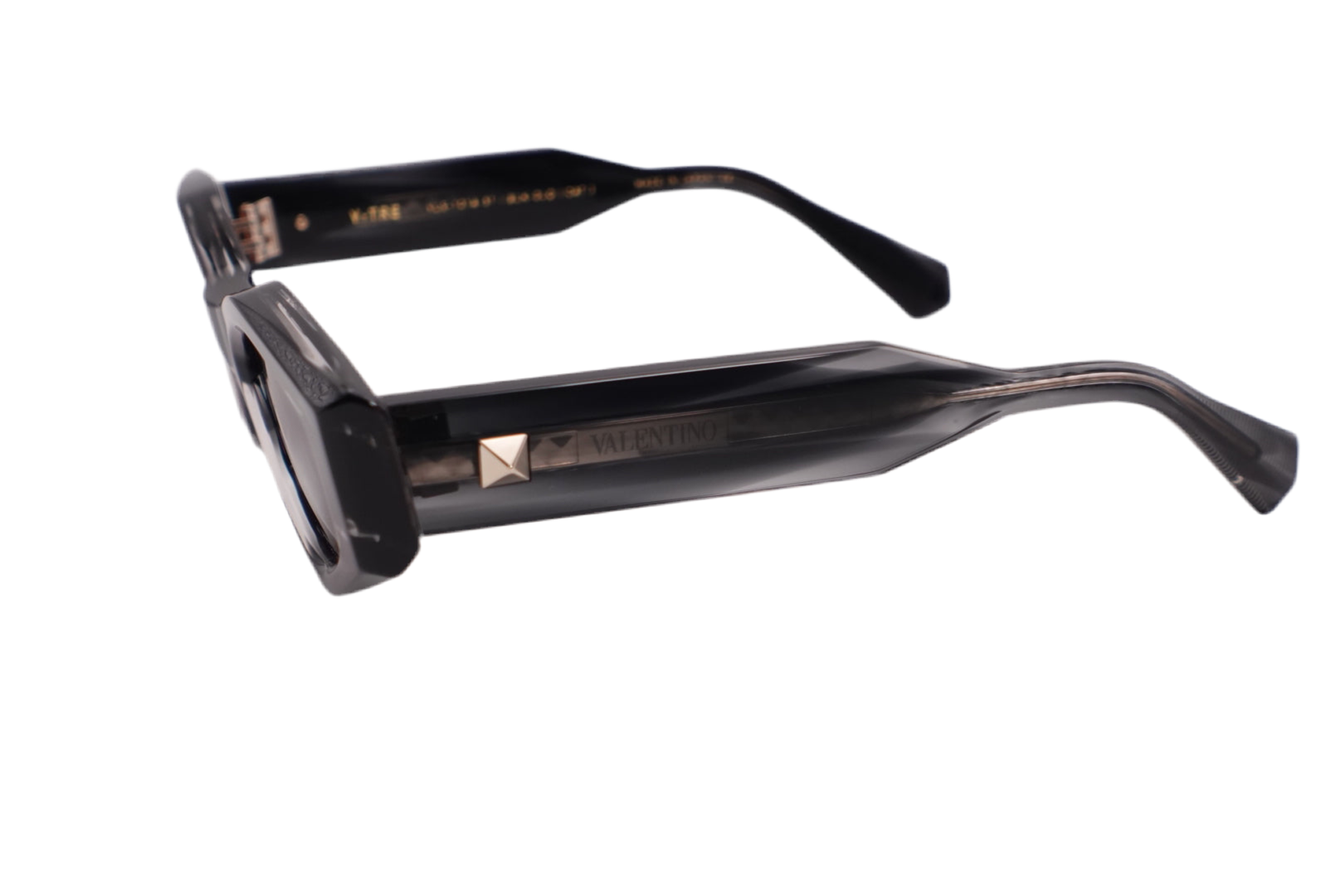 The Valentino V-TRE VLS 101A in black with gold accents delivers a bold and refined aesthetic. Crafted in Japan from premium acetate, this frame features sharp lines and rich detailing, paired with Category 3 sun lenses for excellent sunlight protection. A modern design with timeless Valentino sophistication.