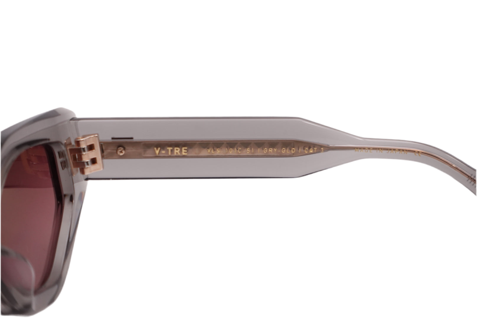 The Valentino V-TRE VLS 101C in grey with gold accents offers a bold yet modern look. Made in Japan from premium acetate, this frame pairs clean architectural lines with refined detailing. Fitted with Category 3 sun lenses, it provides excellent protection while maintaining Valentino’s signature sense of luxury.
